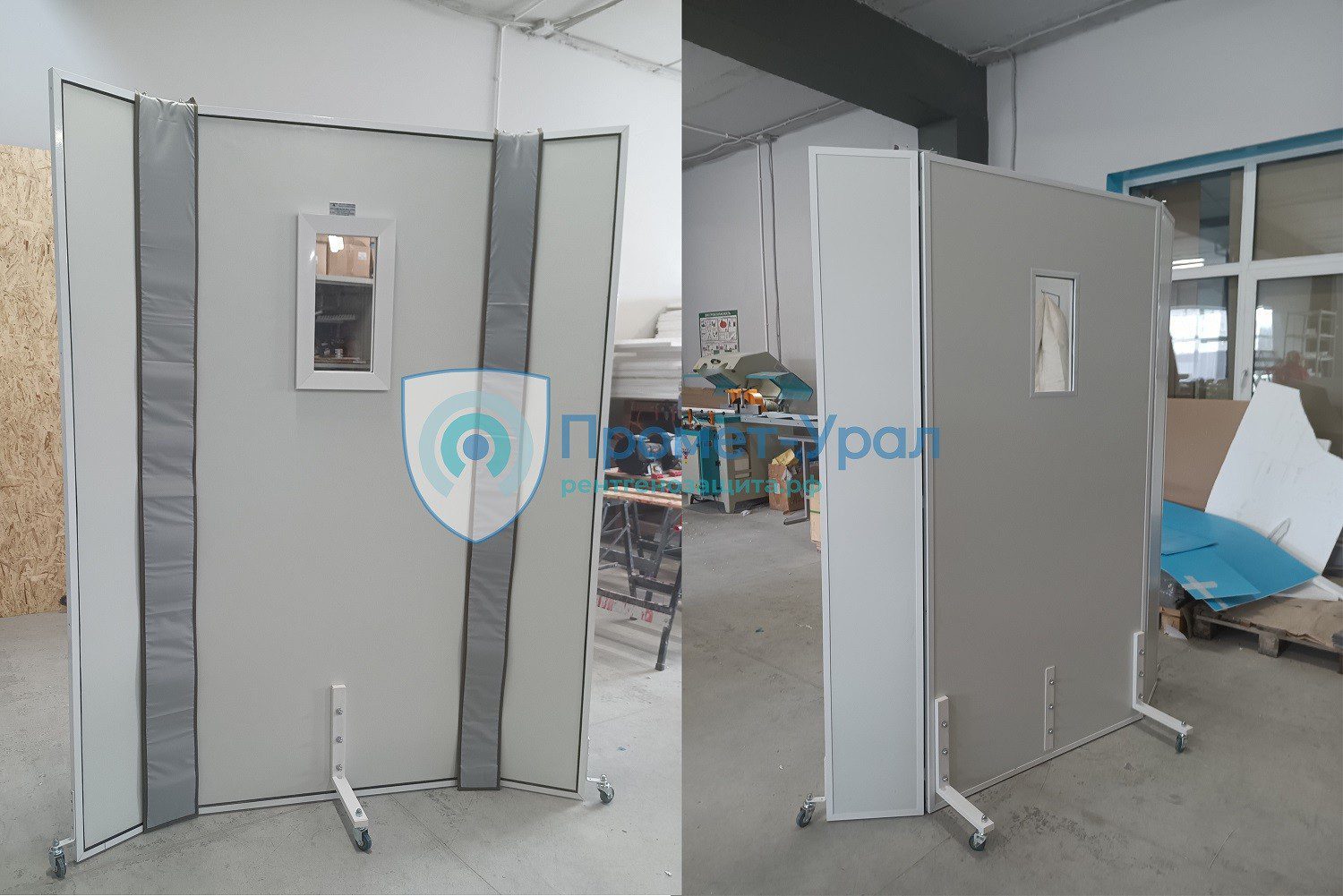 Промет-Урал производит рентгенозащитные передвижные ширмы как полностью из металла, так и с использованием остекления или рентгенозащитной резины. Каркас выполнен из высокопрочного металла и установлен на небольшие колеса, что упрощает перемещение конструкции.