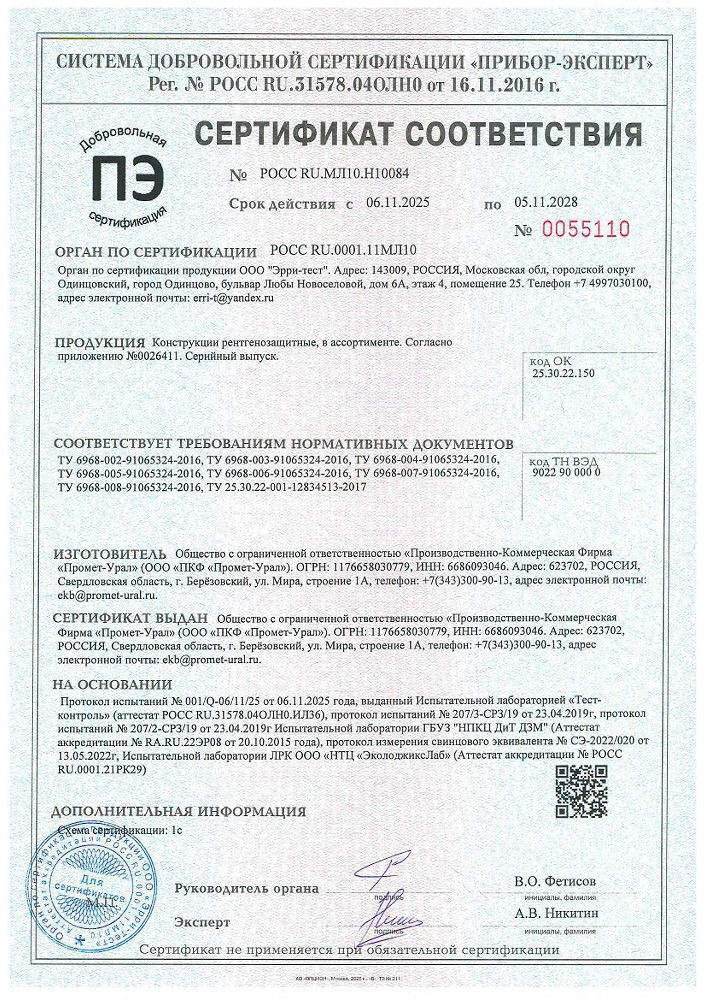 Производство рентгенозащитных изделий Промет-Урал лицензировано. Вся выпускаем рентгенозащитная продукция имеет сертификат соответствия.